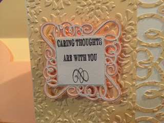 I used Anna's Flourish Cards and Embellishments in Design Studio from Cricut. The card measures approximately 5 X 7. I used Close to My Heart papers, with the Damask Close To My Heart embossing folder. The sentiment is written with the Cricut explore using their .03 black pen. This was attached to the medallion, in Design Space, that was also from the same Anna's Cartridge. I really like the cartridge.