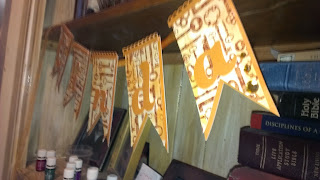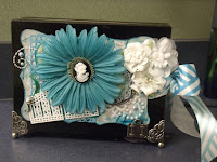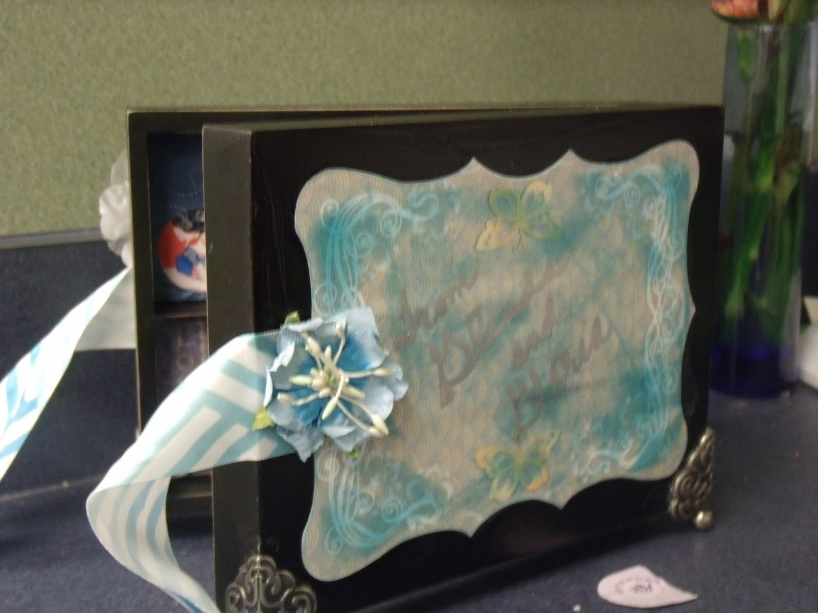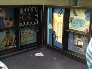 This shadow box was made by my friend Glenda. I cut shapes using my Cricut and various cartridges. The larger section opens out to show several pictures.